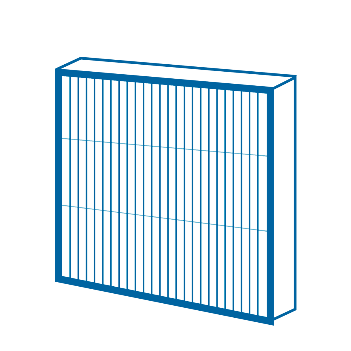 The filter roll is made of synthetic fibres that ensure a uniform performance and the filter can be used in critical environments such as hospitals. A HEPA filter’s large surface area is created through plating of the filter material, and therefore also has a low energy consumption.